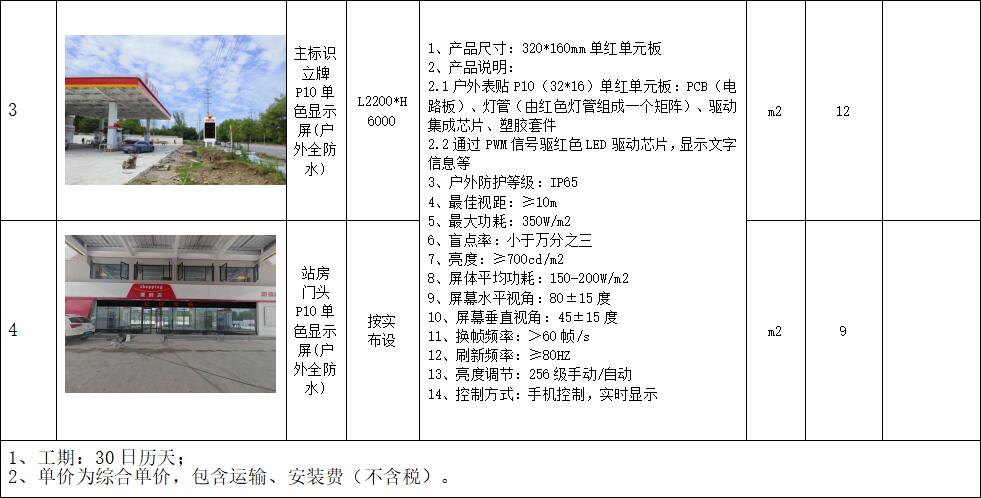 1.1.2談判范圍:江油市東環(huán)線加油站站前LED顯示屏立牌及便利店LED顯示屏安裝。