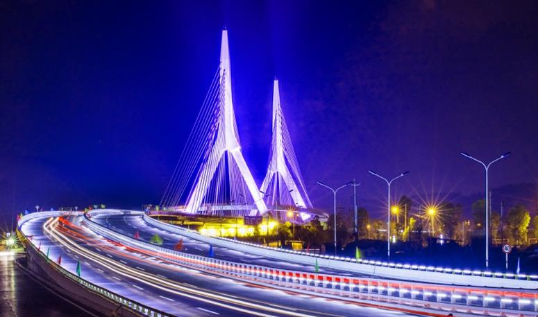 城南新區(qū)一號(hào)橋建成通車,有效地優(yōu)化和改善了綿陽南區(qū)的交通結(jié)構(gòu),極大地緩解了中心城區(qū)的交通壓力,從城東游仙區(qū)到城南新區(qū)不再繞行主城區(qū),城東到城南將縮短5公里左右的路程。大橋在人行層飛架橋面上方,形成并不規(guī)則的“S”形,為全漂浮體系,建設(shè)技術(shù)居世界領(lǐng)先地位。