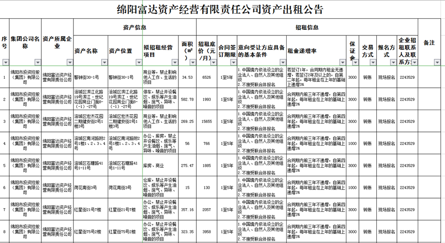 綿陽富達(dá)資產(chǎn)經(jīng)營(yíng)有限責(zé)任公司資產(chǎn)出租公告