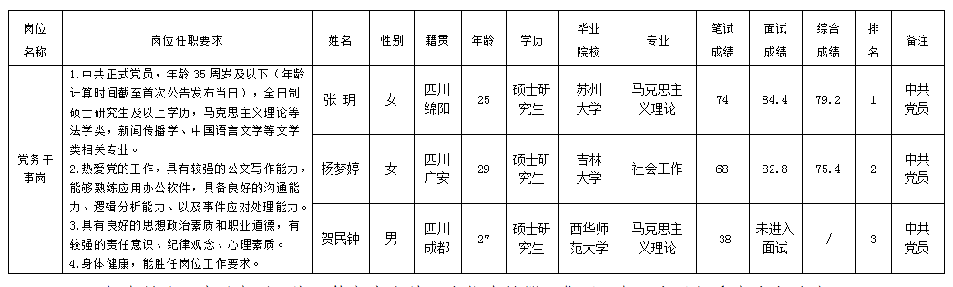 根據(jù)綿陽(yáng)市投資控股(集團(tuán))有限公司發(fā)布的招聘公告及招聘相關(guān)規(guī)定,經(jīng)筆試、面試等程序,現(xiàn)將筆試(面試)成績(jī)予以公示。