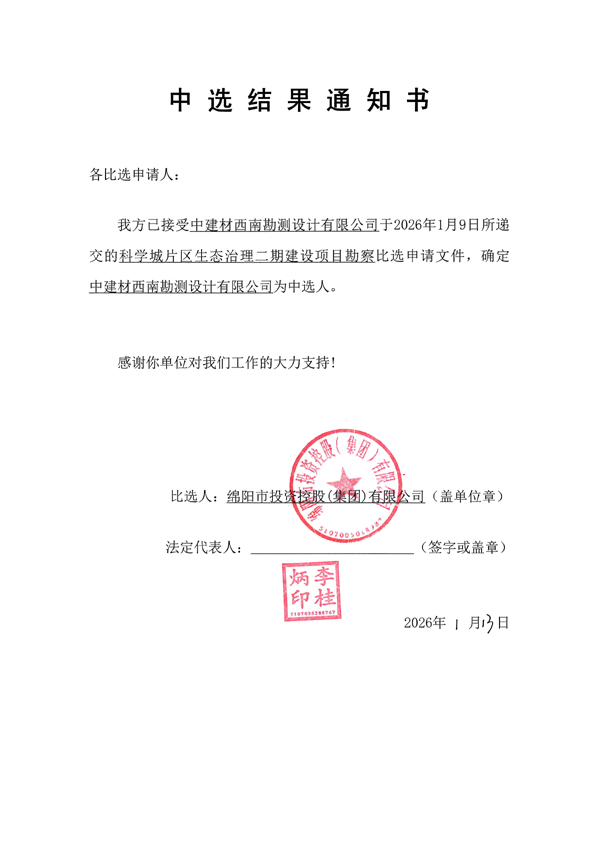 科學城片區(qū)生態(tài)治理二期建設項目勘察中選結果通知