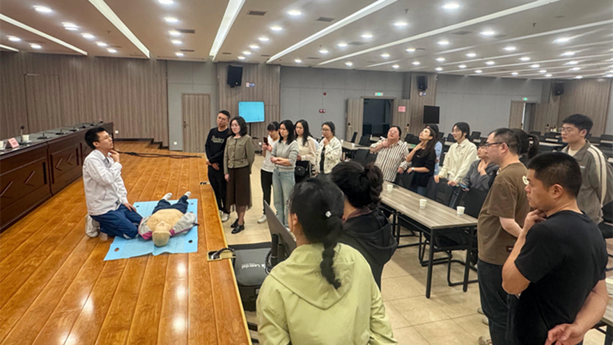 講座中,專家團隊的四位醫(yī)生分別從甲狀腺健康科普、壓力管理與情緒調節(jié)、日常急救知識普及三個方面展開專業(yè)講解,并通過現(xiàn)場演示幫助員工掌握心肺復蘇、海姆立克急救法等技能。講座現(xiàn)場氣氛熱烈,互動頻繁,干貨滿滿的分享讓參與員工受益匪淺。